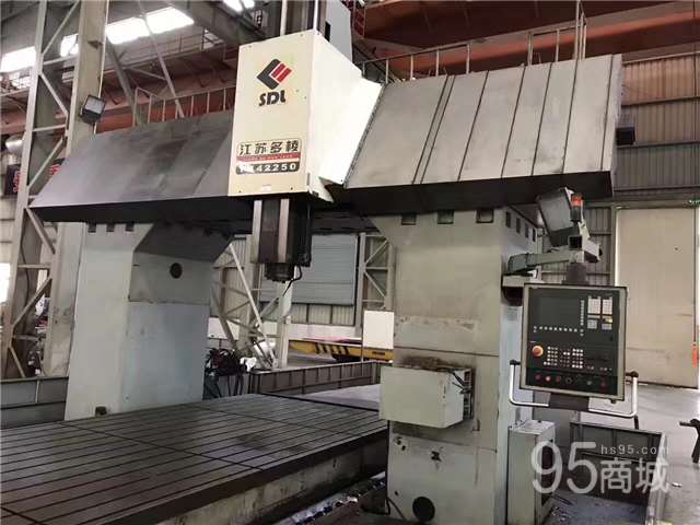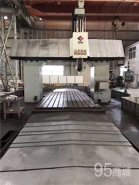 出售江苏多棱TK42250-600定梁龙门式数控镗铣床 参数如下: 型号:TK42250-600 工作台:2500x6000mm 门宽:3500mm X轴行程:6500mm Y轴行程:3500mm 主轴垂直行程:1250 主轴转速:4000 主轴锥孔:250 50 主轴直径:130 主轴端面至工作台:1450mm XY/Z快速M/MIN1-5000 刀柄规格:BT50 系统:西门子840D 角度铣头:两个 刀库:40 机床尺寸:15000x6800x6300 机器自重:110000kg 生产日期:2009年