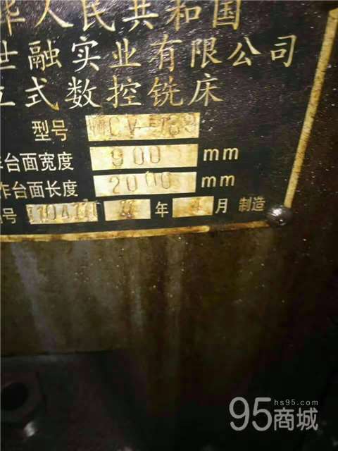 出售二手上海世融CV-1890数控铣 参数如下: x/y/z轴行程:1800x900x680mm 主轴鼻端至工作台面:160-840mm 主轴中心至立柱表面:950mm 工作台尺寸:2000x900mm 工作台最大荷重:2200kg T型槽:5x22x165mm 主轴转速:6000rpm 主轴锥度:BT50 主轴马达功率:15/18.5kw 最大切削进给速度:6m/min 2011年4月产