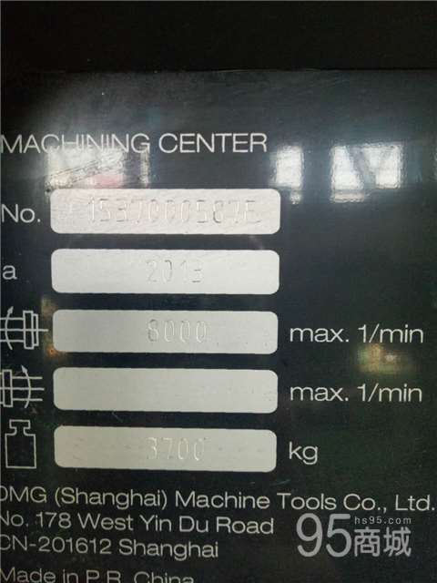 出售二手德玛吉立式加工中心DMC635V 参数如下: 三轴行程 :635x510x410 mm 主轴最高转速:8000rpm 工作台尺寸790x560mm 2013年生产,实际加工时间800多小时 带原装机床对刀仪,20刀位刀库