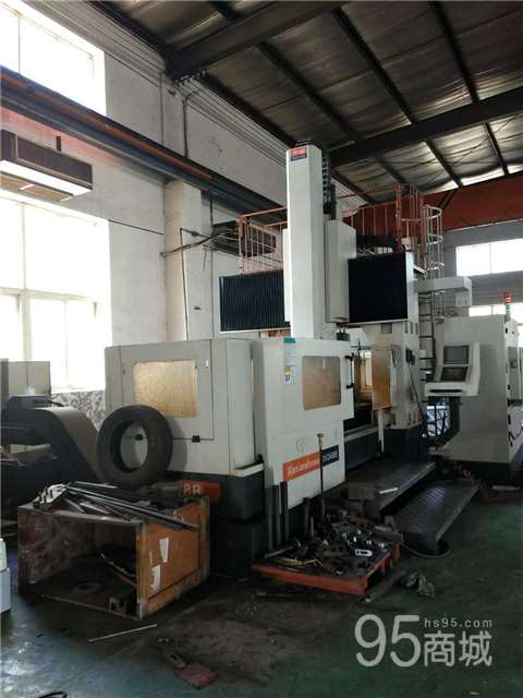 出售二手汉川XK2408B数控定梁龙门式镗床 参数如下: 工作台尺寸(宽度x长度):850x2000mm 工作台最大承重:4t T型槽尺寸:5x22mm 双立柱有效宽度:1200mm 主轴端面至工作台面最小距离:200mm 三轴行程:2200x1000x750mm 数控系统:发那科 主轴电机功率:15/18.5kw 主轴输出最大扭矩:380/470Nm 主轴转速范围:40-6000rpm 定位精度x:0.02(半闭环) 定位精度y:0.018mm(半闭环) 定位精度z:0.015mm(半闭环) 重复定位精度x:0.01mm(半闭环) 重复定位精度y:0.009mm(半闭环) 重复定位精度z:0.008mm(半闭环) 机床重量:16.5t 机床外形:5621x5341x4884mm