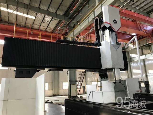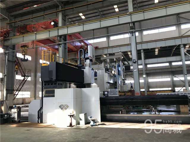出售二手宁波海天GNU36x80龙门加工中心 参数如下: x轴行程:8500mm y轴行程:4200mm z轴行程:1250mm 龙门跨距:4200mm 主轴端面至工作台距离:800-2050mm 工作台面积:8000x3000mm 最大承重:40t T型槽(数量x宽x间距):14x36x200 驱动方式:全齿轮传动 主轴转速:10-3500rpm 主电机功率:30/37kw 主轴扭矩:1860/2300Nm 主轴直径:120mm x/y/z快移速度:10/15/10m/min 刀柄形式:BT50 刀库形式:机械手刀库 系统:法那科Oi-MD 配件:转角铣头1个 2016年生产:(真正使用时间1个月)可现场试机