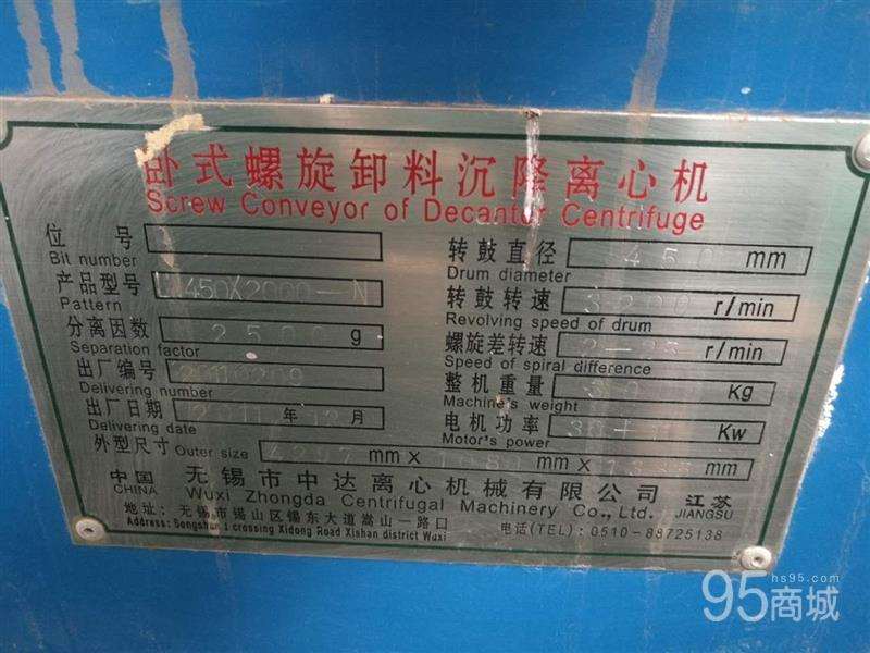 出售2011年无锡卧式螺旋卸料沉降离心机
