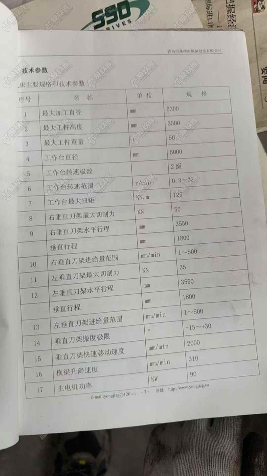 青岛永基10年6.3立车,卡盘5.2米,高度3.5米,承重50吨,唐山库房