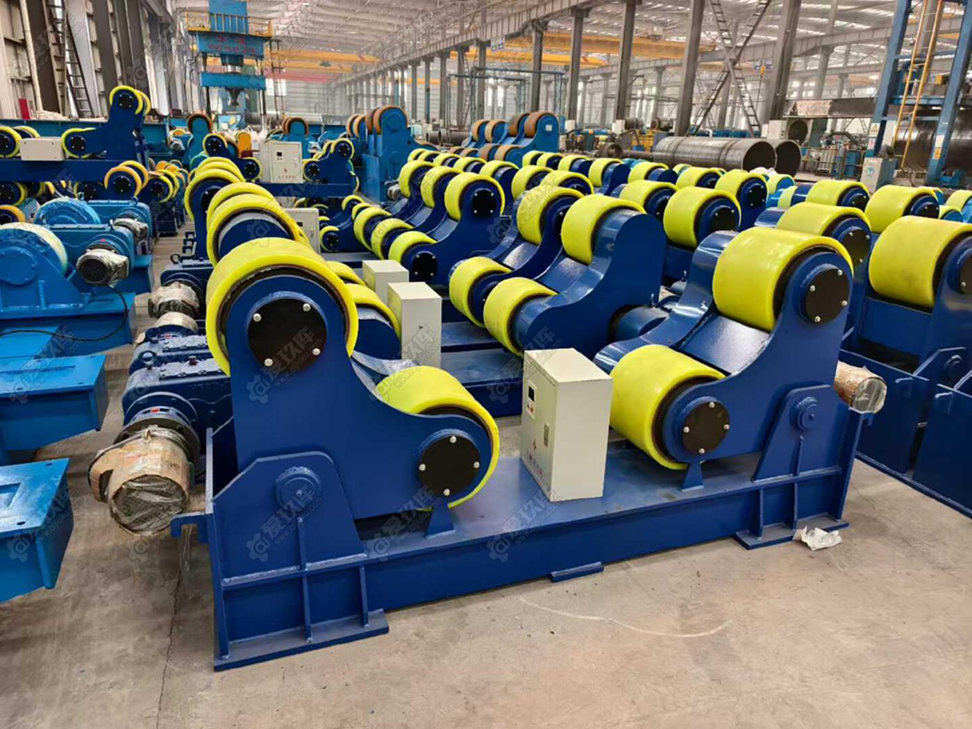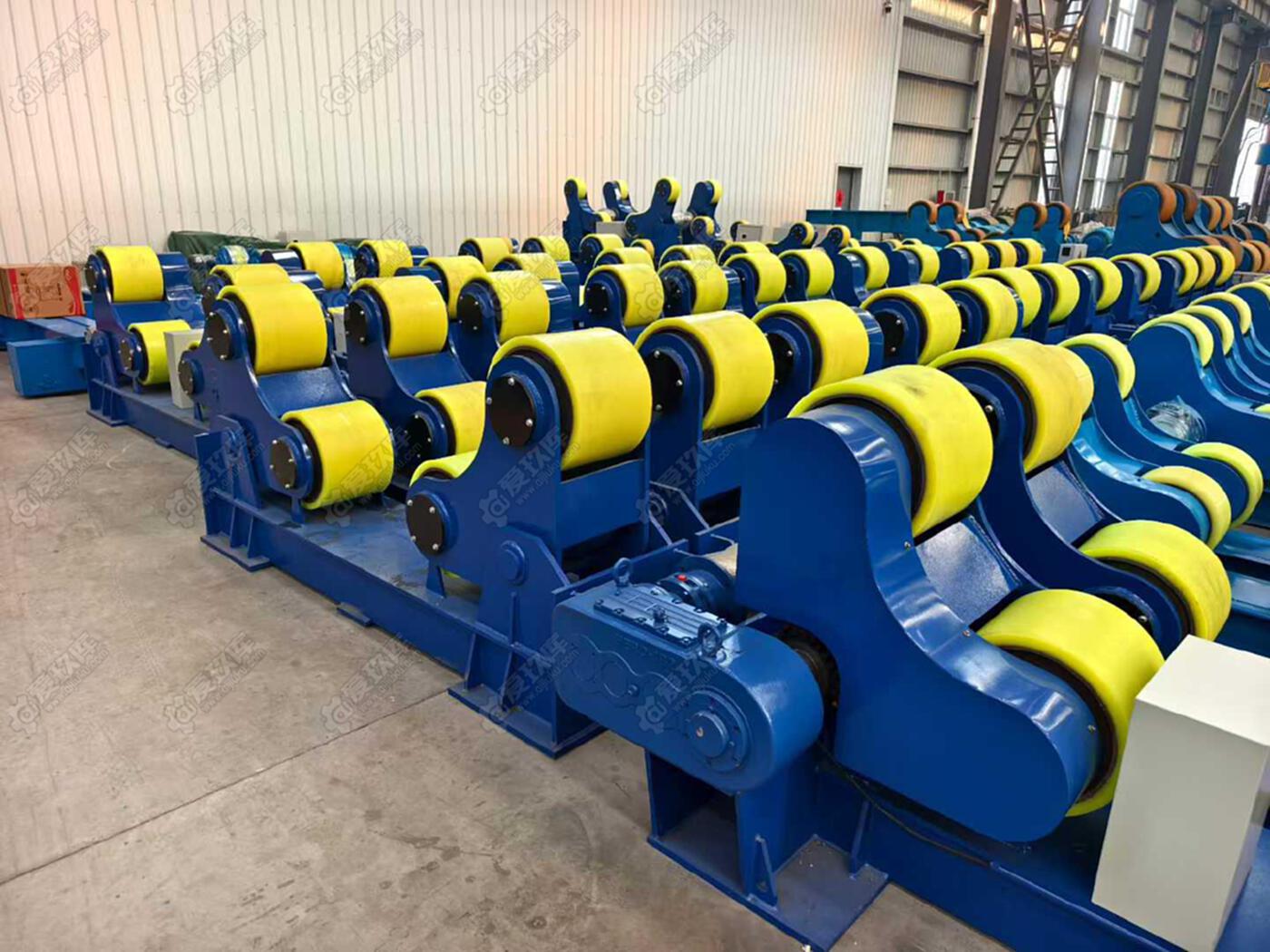 现货出售出租二手承重60吨自调试滚轮架,聚氨酯胶轮,JB2双驱动减速机,含税质保一年