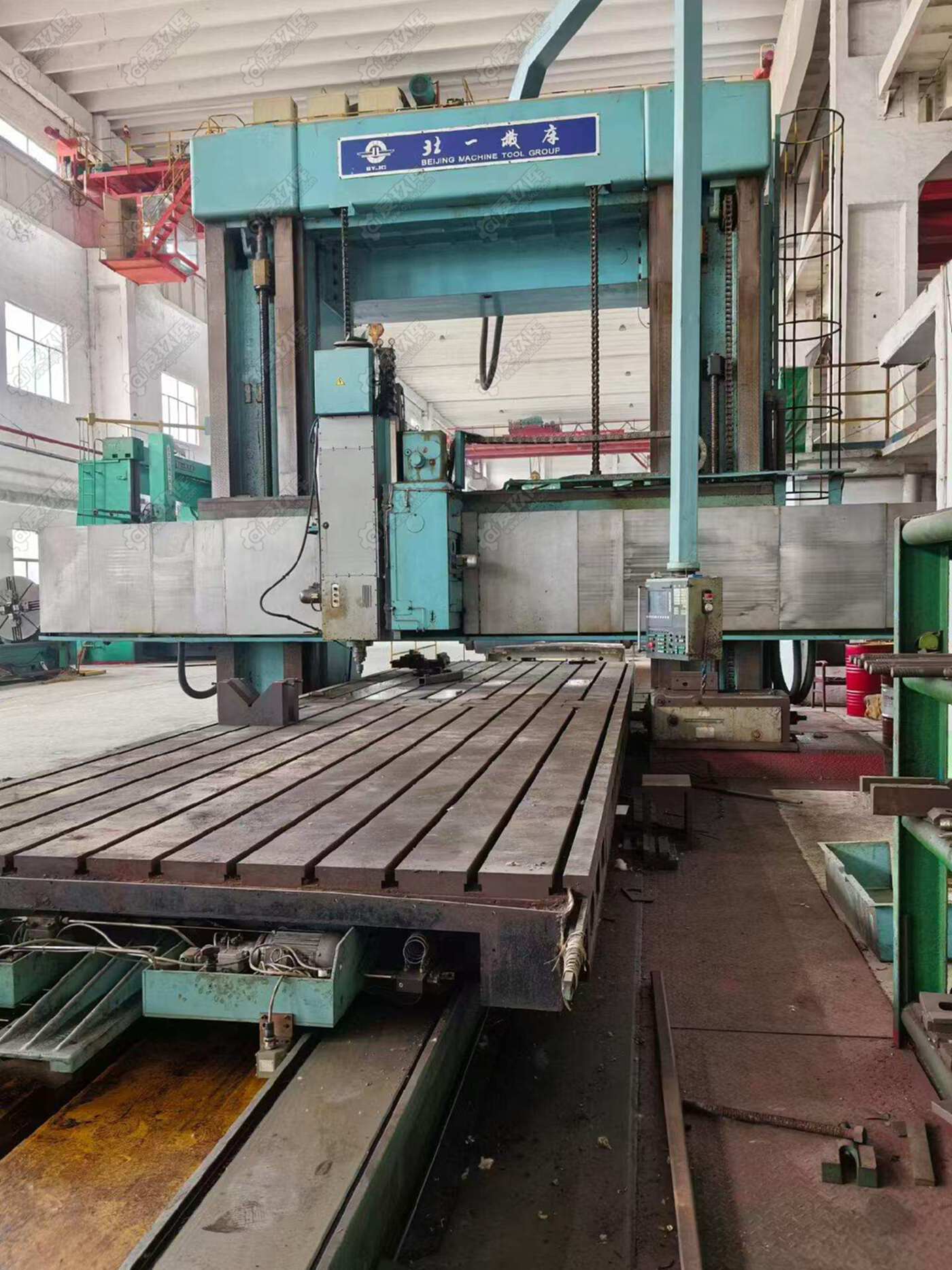在位出售北一产3.4米X10米数控重型龙门镗铣床.工作台3米X10米.门宽3.4米.加工高度3米.西门子802DS1系统.三轴数控带编码器.山东看货,说明书齐全