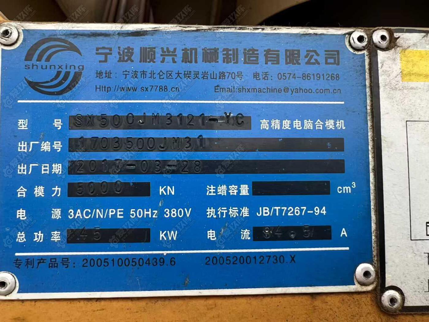 出售宁波顺兴17年高精密500吨合模机,批发同行