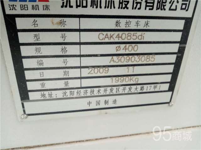出售二手沈阳机床CAK4085数控车床 参数如下: 型号:CAK4085, 最大回转直径400mm, 最大加工长度850mm,+ 法兰克系统 机床重量1990kg, 主电机功率7.5KW 外形尺寸2200X1500X1200 主轴转速范围:2000rpm 重量:1990kg 生产日期2009年11月