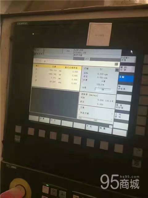 参数如下: 工作台尺寸:2500x8000mm 工作台T型槽(槽宽x槽数):28x13 工作台行程(x向):8500mm 主轴头在横梁上行程(y向):3500mm 主轴垂直行程(z向):1000mm 主轴端面至工作台距离:200-1200mm 主电机功率:37/51kw 主轴最大输出扭矩:1000Nm 主轴锥孔:50ISO 主轴轴承循环冷却方式:油冷 快速移动速度(x向):10m/min 快速移动速度(y/z向):10m/min 切削进给速度:1-5000mm/min 刀柄规格:BT50 滑枕尺寸:400x400mm 外形尺寸(长x宽x高):19000x6800x5300mm 西门子840D系统 重量:110T